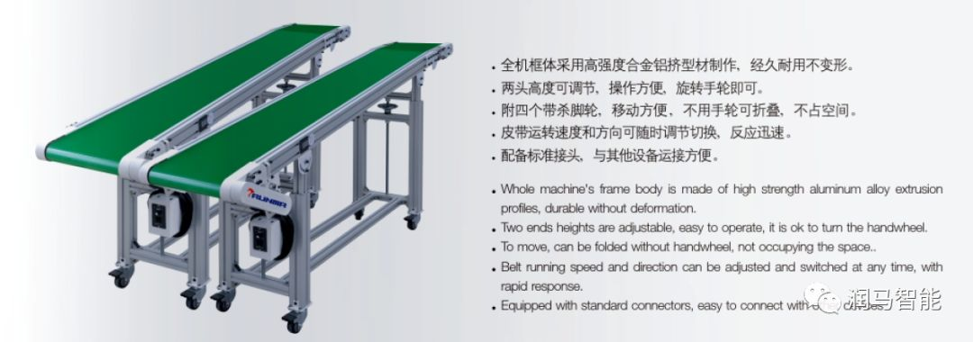 機(jī)構(gòu)采用高強(qiáng)度鋁合金型材制作,經(jīng)久耐用不變形,高度、斜度可調(diào),立柱支腳采用萬向可剎車滑輪,移動(dòng)便捷。運(yùn)行方向、速度可隨意切換,配合機(jī)械手發(fā)揮最大的經(jīng)濟(jì)效益。