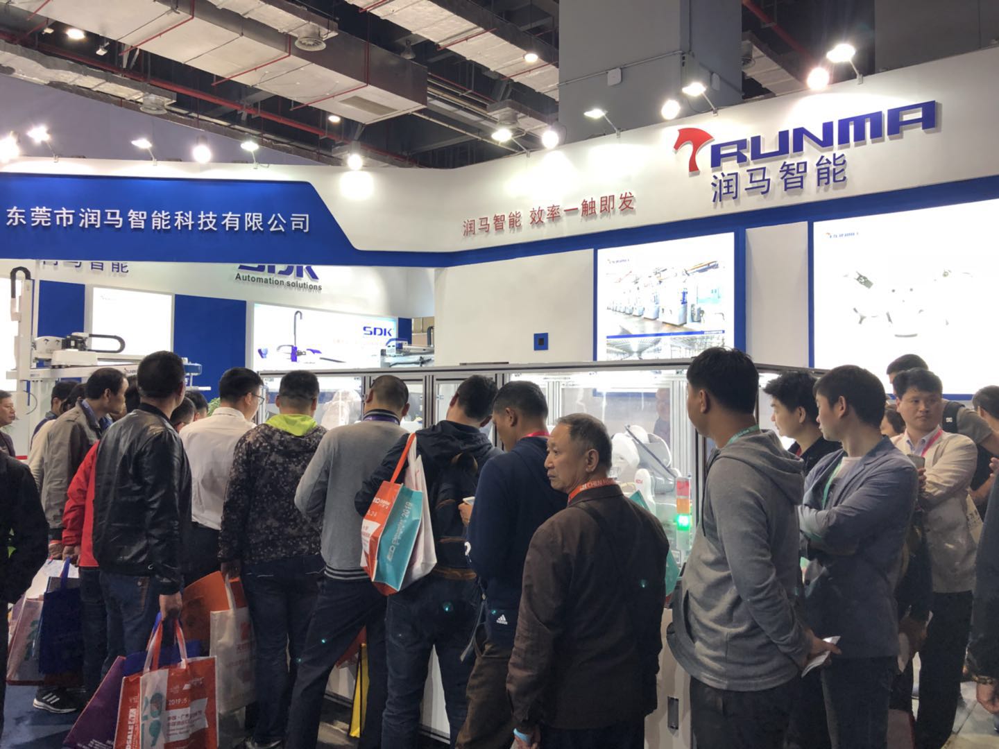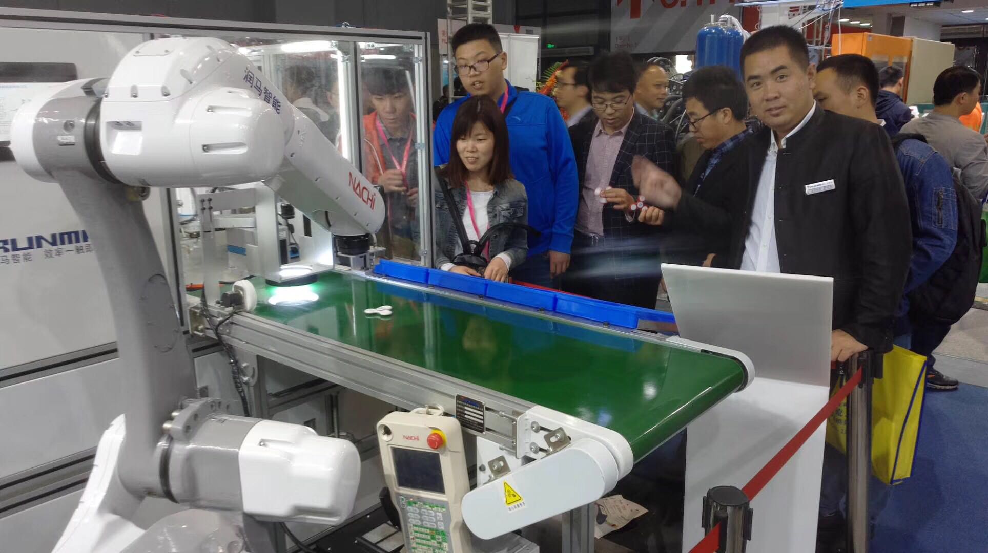 2018年中國開展塑膠工業(yè)展覽會,潤馬智能一如既往的參加,我們潤馬智能機(jī)械手展示勒六套自動化機(jī)械手的應(yīng)用,其中有一套小編必須要介紹一下,因為這個機(jī)械手的應(yīng)用讓我們展館人氣爆棚走到哪里都知道我們是發(fā)指尖陀螺的,因此我們針對這次展會做了一套指尖陀螺組裝的一個應(yīng)用,根據(jù)我們設(shè)定好的功能步驟去自動組裝好一個成品的指尖陀螺,并且我們現(xiàn)場直接送出去,話不多說請看下圖排隊領(lǐng)取指尖陀螺的人吧
