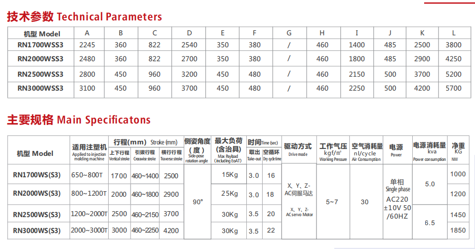適用于650T--3000T注塑機(jī),大型伺服機(jī)械手,手臂為雙截式,單手臂機(jī)型。適用于大型產(chǎn)品取出,例如:塑料卡板、浴盆、汽車配件等等。也適用于頂入式模內(nèi)帖標(biāo),例如:花盆、垃圾桶、油漆桶等等