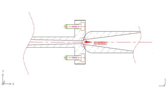 2、射嘴直徑相比澆口套的始端直徑小很多,如射嘴直徑∅5,澆口套直徑∅3.特別對(duì)于粘度低的材料注射時(shí)會(huì)產(chǎn)生冷料而形成倒扣。適當(dāng)縮短成型時(shí)間,增加射嘴溫度,無(wú)法解決只能更換口徑相穩(wěn)合的射嘴。
