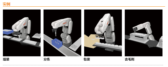 - 采用輕型機(jī)械手及先進(jìn)的控制技術(shù),實(shí)現(xiàn)了高速的動(dòng)作性能。提高了生產(chǎn)效率。小型超速機(jī)器人可用于產(chǎn)品的組裝,分揀,包裝,去毛刺。